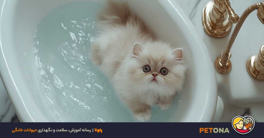 - آرام کردن گربه قبل از حمام:با نوازش و صحبتهای ملایم گربه را آرام و کم استرس کنید تا همکاری بیشتری داشته باشد.